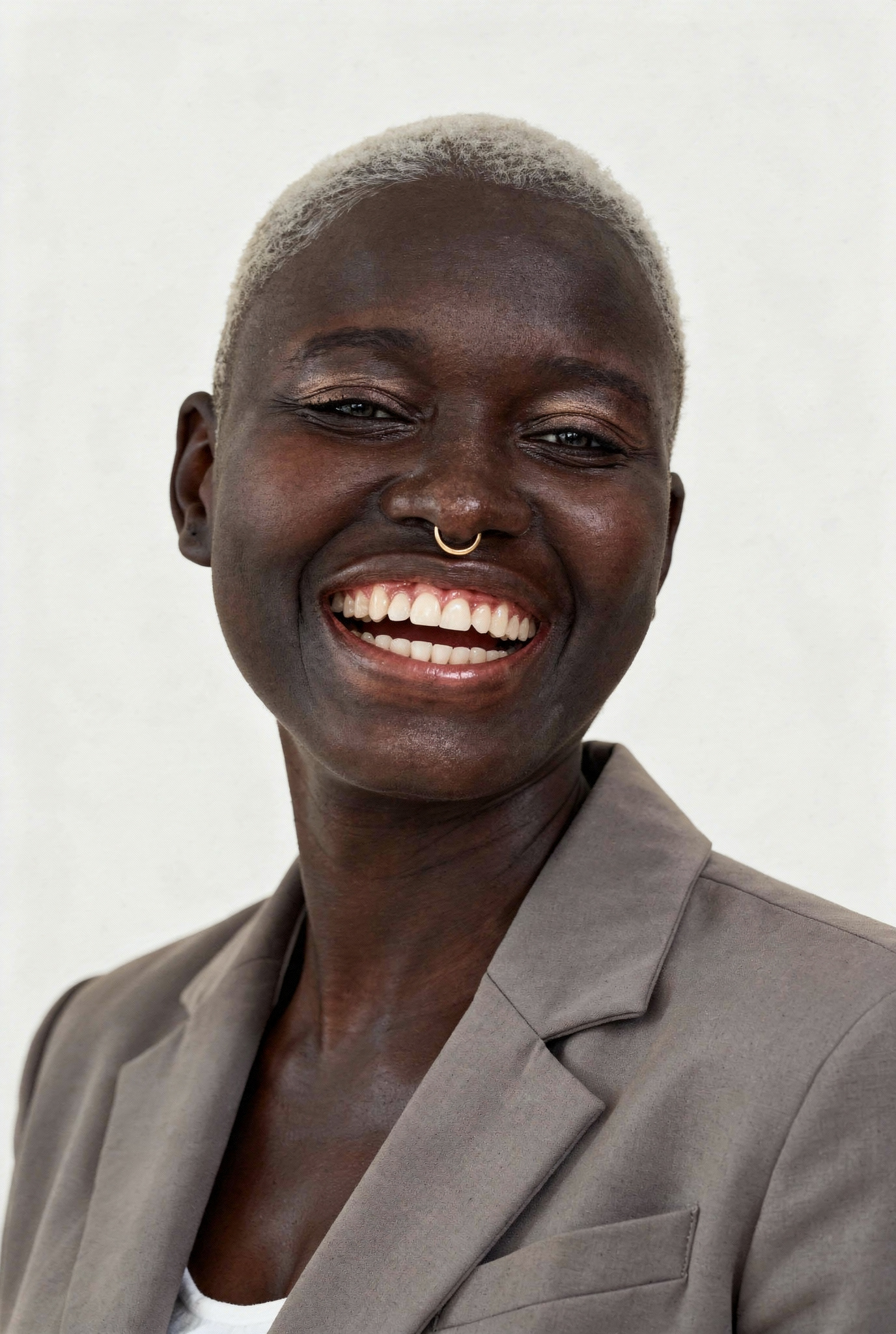 Job application headshot of this woman, plain background, well-groomed appearance, professional yet approachable